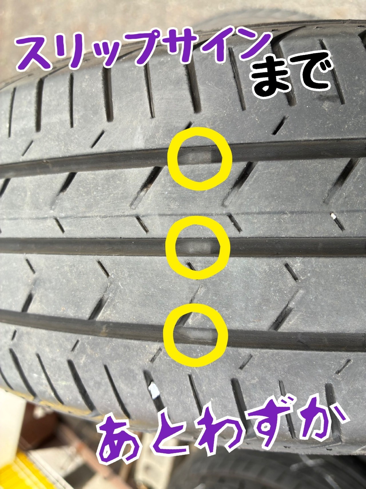 残溝1.6㎜を示す「スリップサイン」まであとわずか。