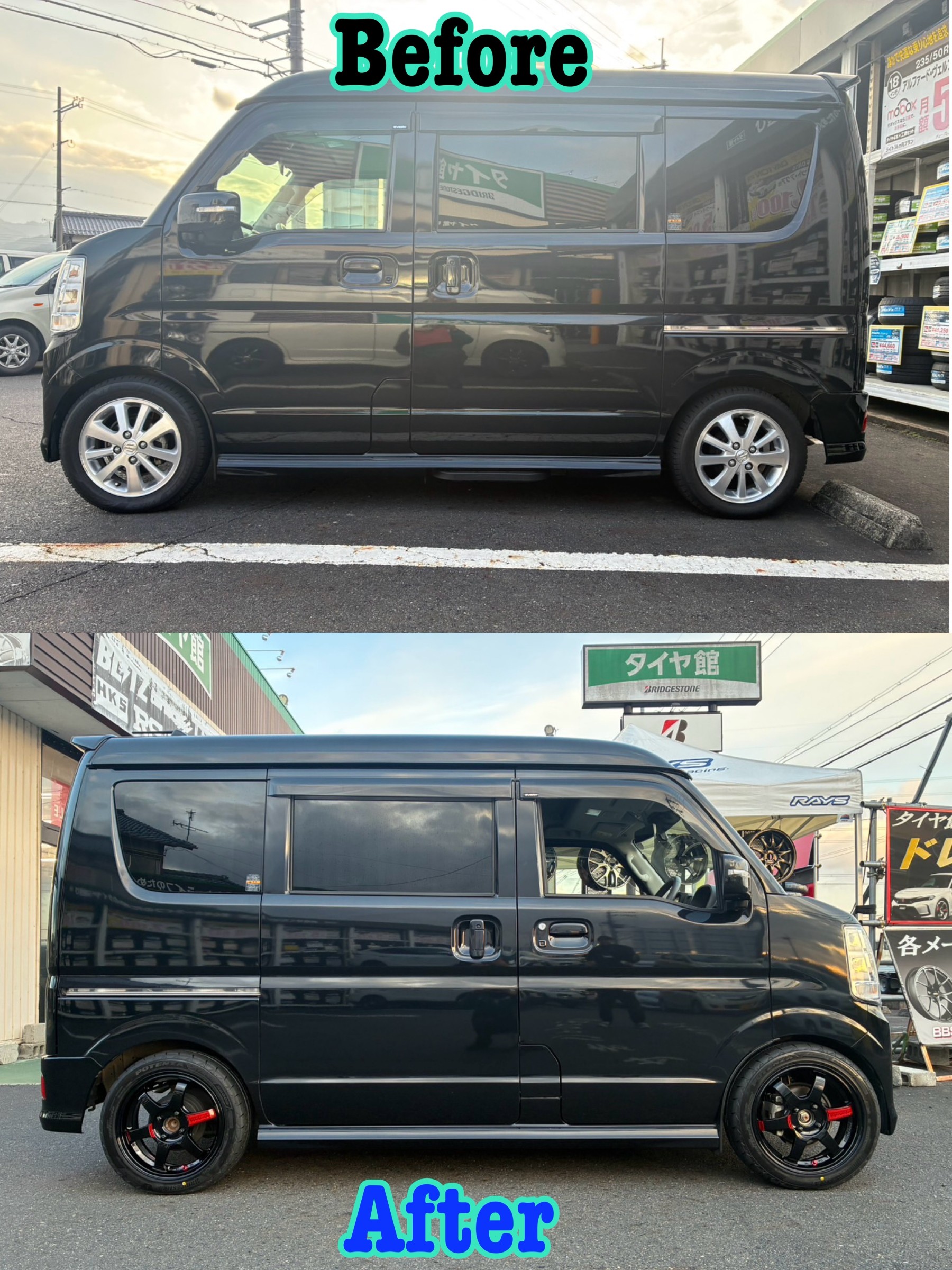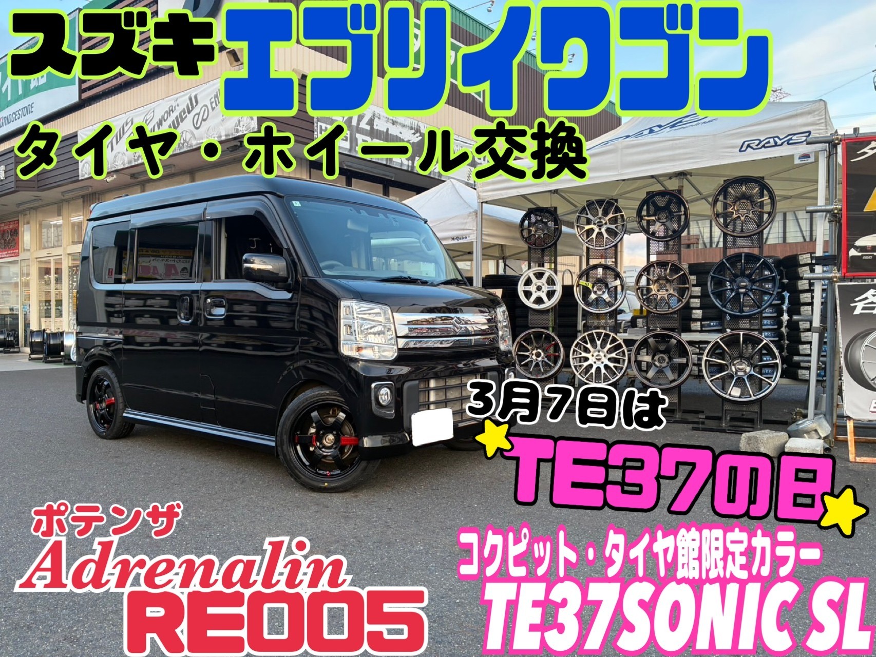 【タイヤ館甲賀はRAYSナンバーワンショップです】スズキ・エブリイワゴンのタイヤ&ホイール交換しました☆彡/ポテンザ RAYS TE37 限定カラー