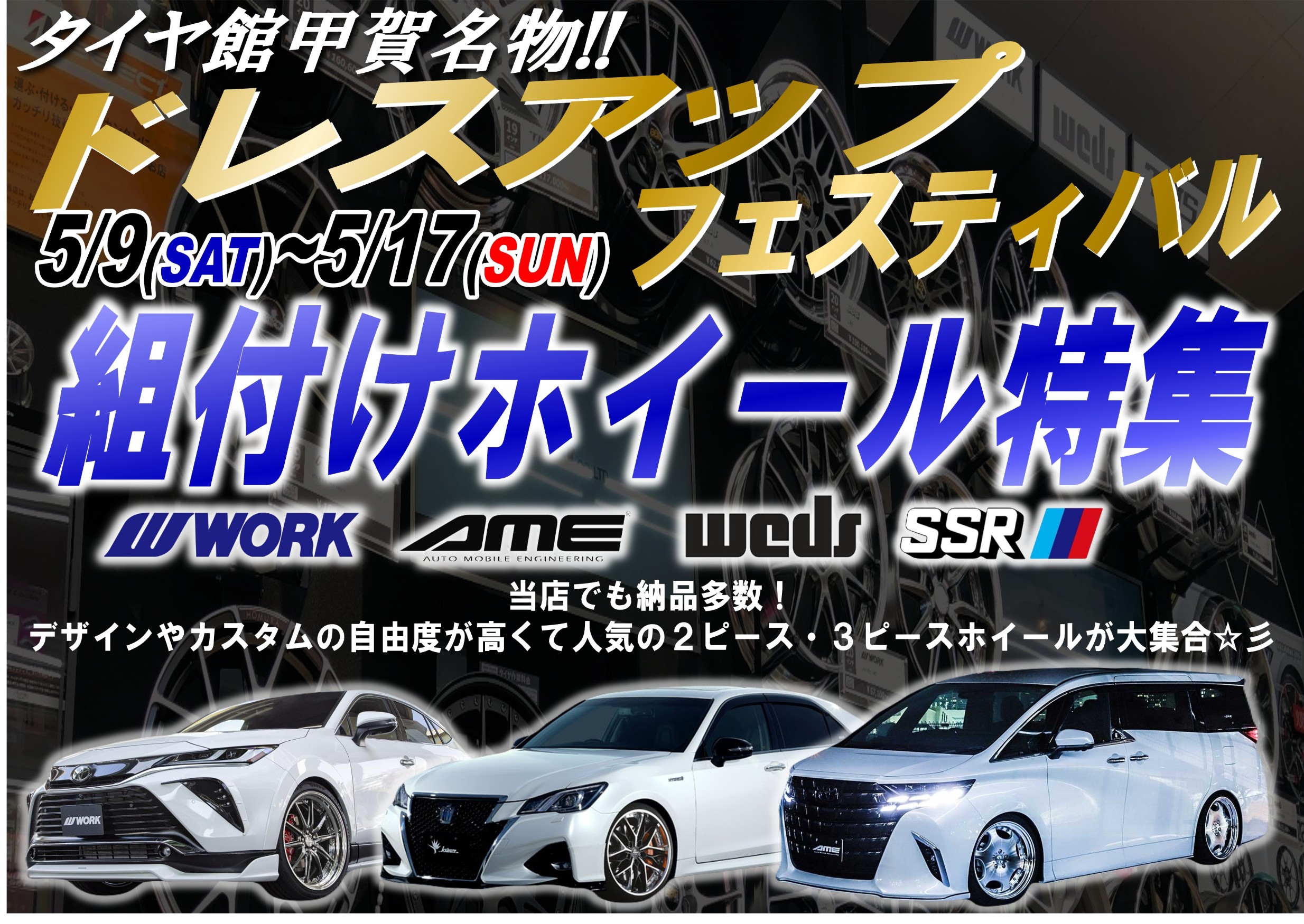【告知】タイヤ館甲賀恒例のホイールイベント!今回は〈組付けホイール特集〉☆彡/WORK Weds AME SSR