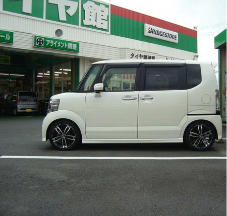 NBOXカスタムに16インチアルミホイール・ばね装着しました。