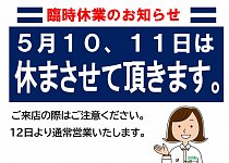 5/11(水)は臨時休業いたします。