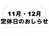 2021年11月・12月定休日のお知らせ。