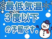 明日、明後日は最低気温も低くなる予報が出ています。 ※彦根気象台ホームページより また、各メディアからも、「冷え込み」のアナウンスを聞きます。 寒そうですね… 体調をくずされないようにご注意くださいね。 また気温が3℃以下の場合は 路面が凍結する恐れがあります。 朝晩の運転も十分にご注意...