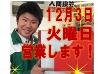 本日12/3 火曜日も 冬タイヤ装着での混雑の為 臨時営業しております! 営業時間は通常どり 夜19時まで。 ぜひお仕事帰りもお寄りください!