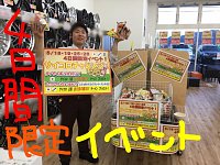 ☆☆☆イベント開催決定☆☆☆ 第一段・・・5月18日(土曜)19日(日曜) 第二段・・・5月25日(土曜)26日(日曜) この4日間がチャンスですよ~(^^)♪♪ 梅雨入り前に・・雨の濡れた路面の走行もすり減ったタイヤでは運転も心配ですね!! 是非、この期間にお越しください(^^) 只今、...
