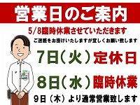 5月8日は臨時休業させていただきます。