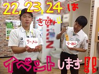 こんにちは!! 今日は暑い~(>O<)貴重なお天気です♪♪ 昨日は休みで夕方から釣りしてたのですが・・・ 全く釣れずのボーズでした(´д`:) さて、今週末はまたまた3連休です!! 天候は・・・どうなるか??ですね~ WEBでも告知してますが、イベントするのでみなさまの ご来店お待ちしております~(^...