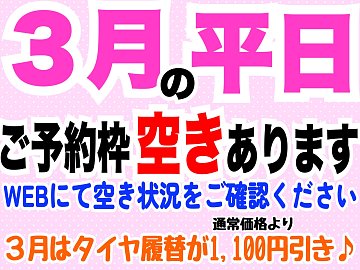 夏タイヤへの履き替えは3月中がおトクです(*^-^*)【平日空きあります(3/13時点)】