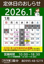 本日(1/28)はお休みです。