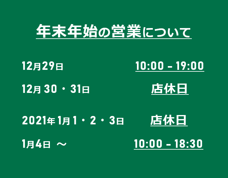 年末年始の営業は以下の通りとなっております。
