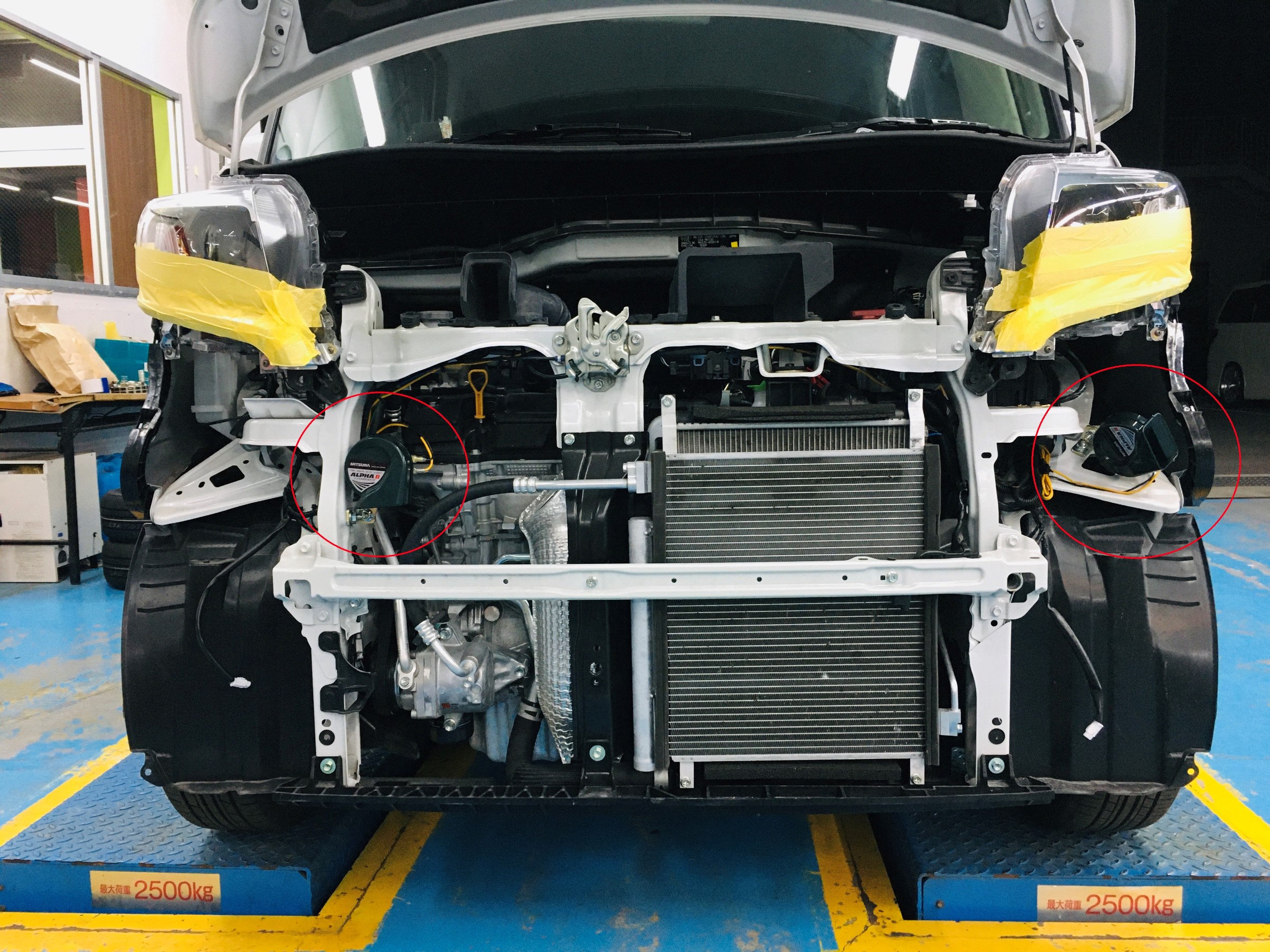 今回のホーンは増設で、2つの赤〇の部分になります♪(※分かりにくいですが・・・)