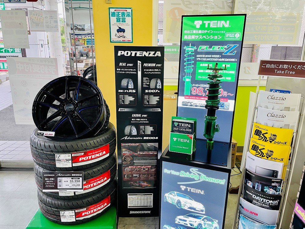 NEW コーナー! ポスト 2021年6月21日 愛車をカスタム予定の方に!朗報です! 日本製で高品質な車高調メーカー「TEIN」のコーナーを設置しました! スポーツカーやミニバン、最近はジムニーなどのサスペンション等も発売しています! カスタムのご相談・お見積りはもちろん「無料」です! 是非この機会に!霧島市国分中央6丁目のタイヤ館国分へ! 担当:イナトミ