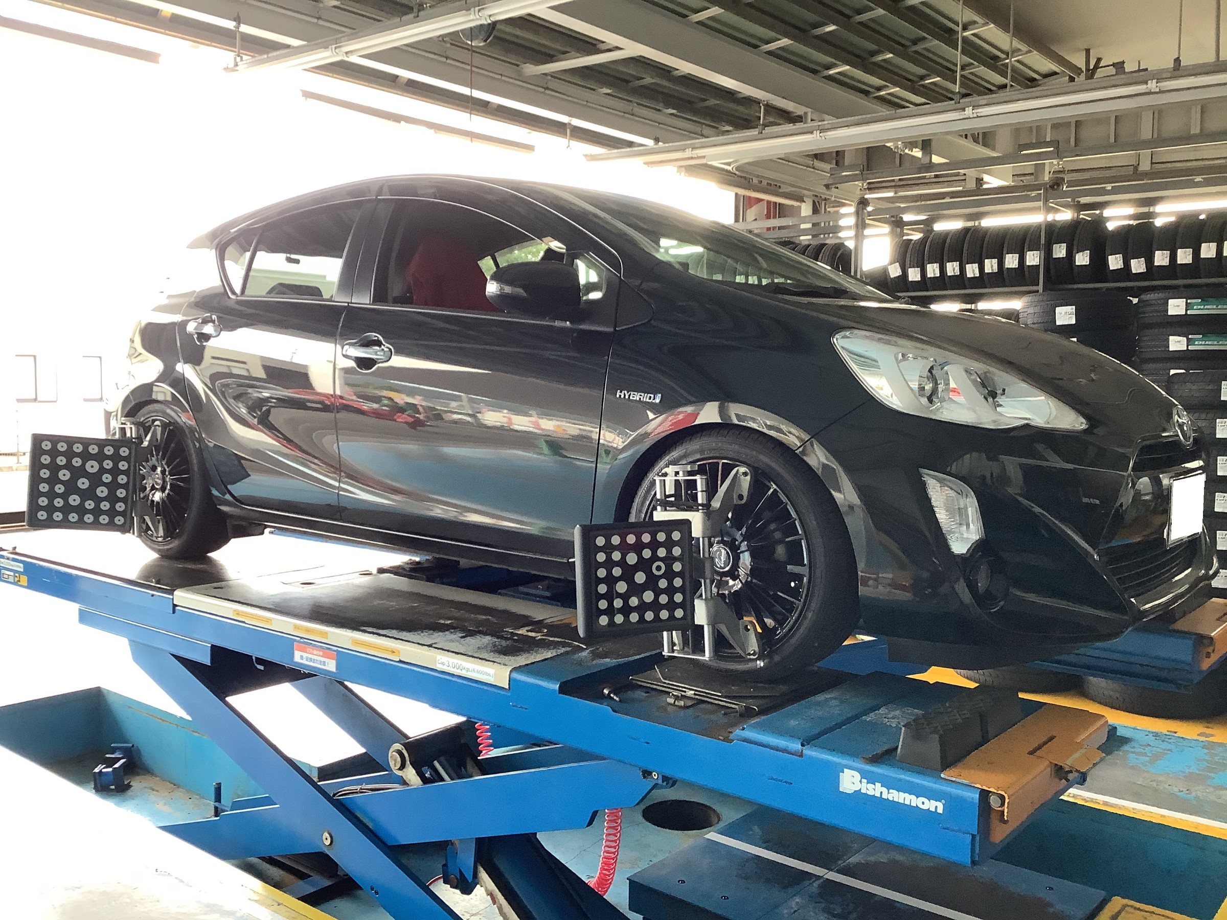 本日は、車高調お買い上げ、お取り付けのお客様のアライメント調整実施しました。