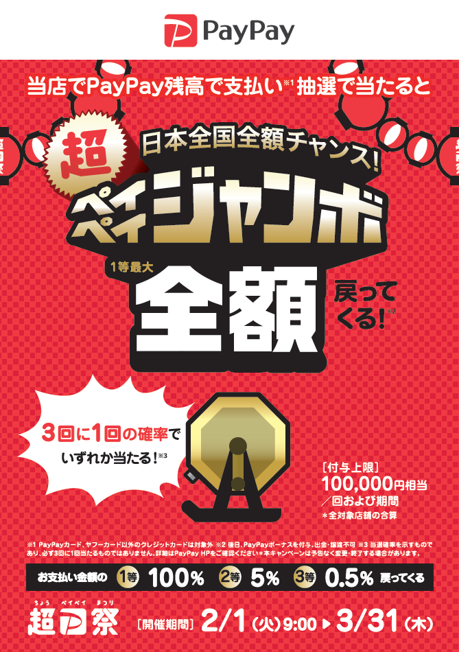 【PayPay使えます】日本全国全額チャンス!超ペイペイジャンボ