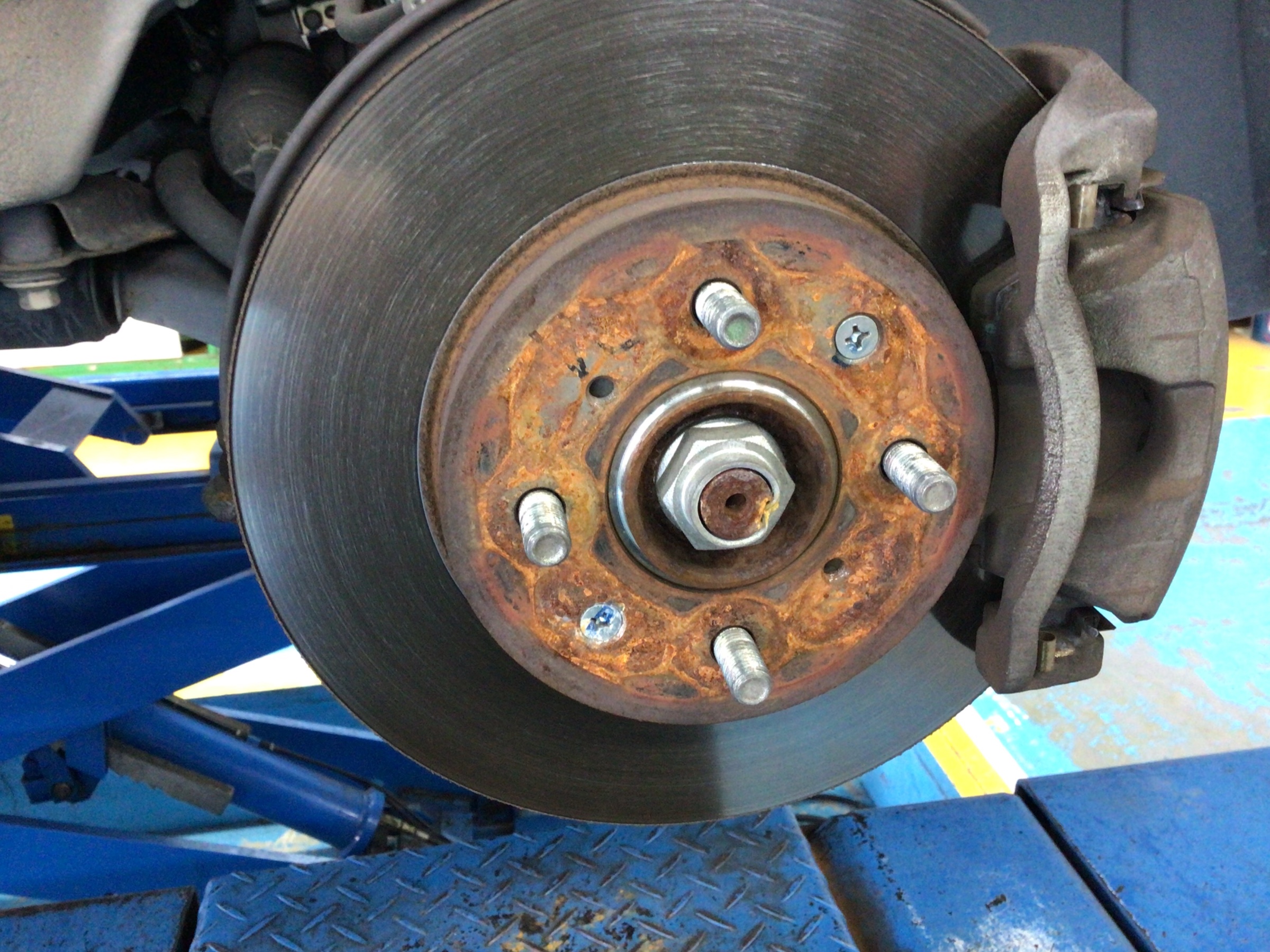 車体側の取付部分(ハブ)がサビていると、ボコボコしているので