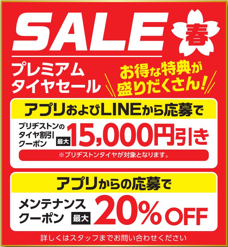 【最大15,000円引き!?】プレミアムタイヤセール開催中!