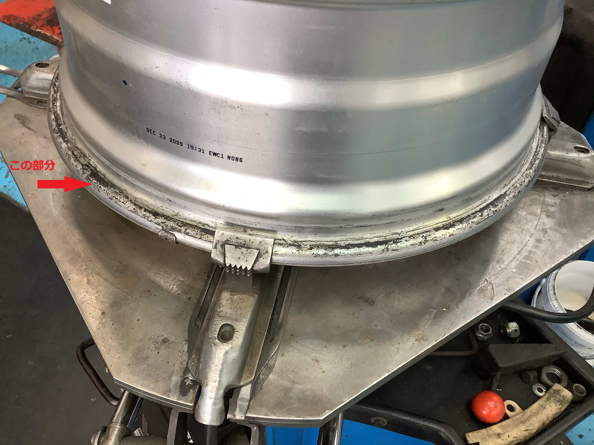 タイヤを外した後のホイールの汚れです。