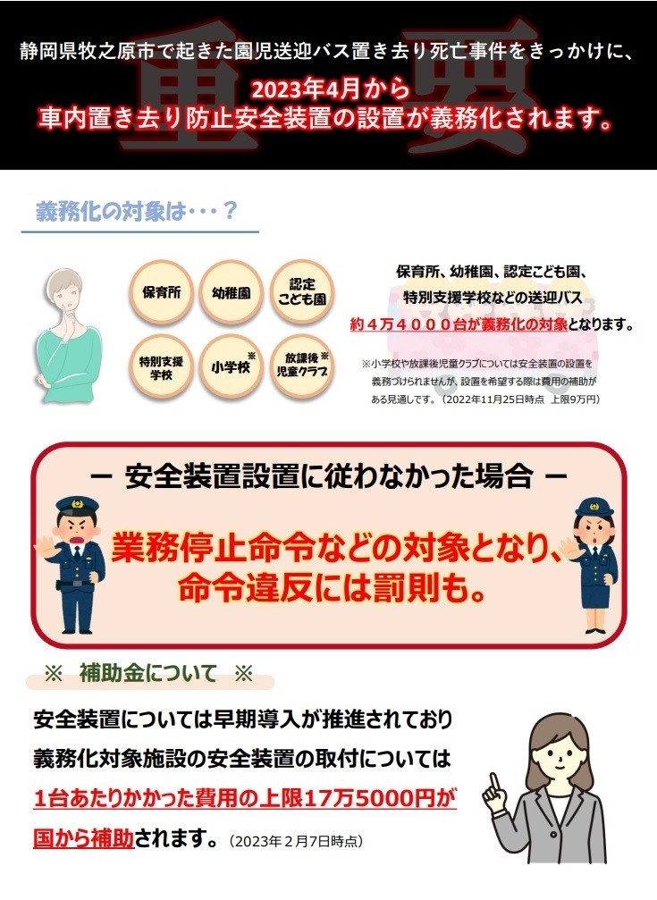 全国の保育所や幼稚園などの送迎バスなど合わせて