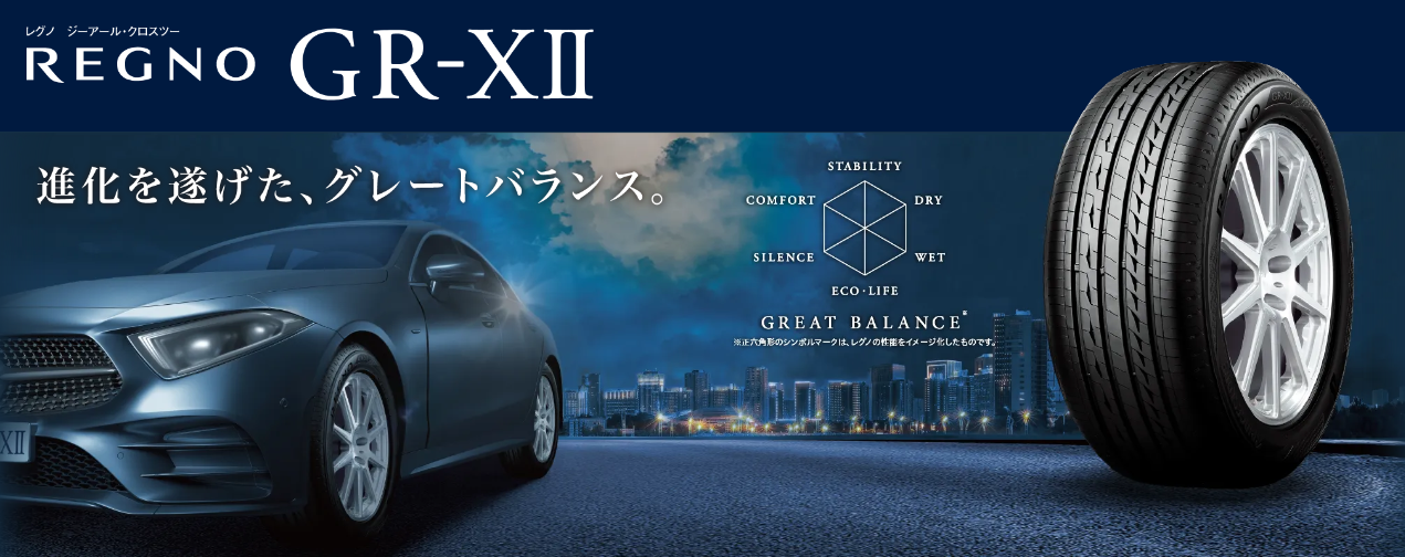 GR-XII 製品特徴:上質な静粛性能、優雅な乗り心地、冴えわたる運動性能。グレートバランスが、更なる進化を遂げる。 - レグノ(REGNO) - 株式会社ブリヂストン
