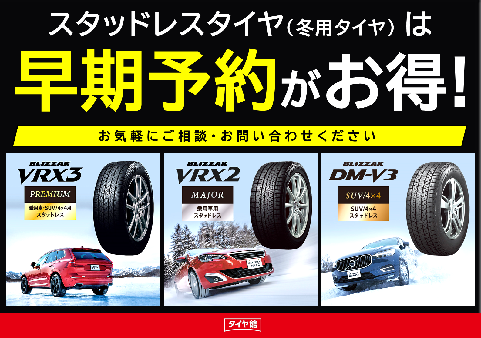 スタッドレスタイヤ(冬用タイヤ)の【早期予約】をスタート!