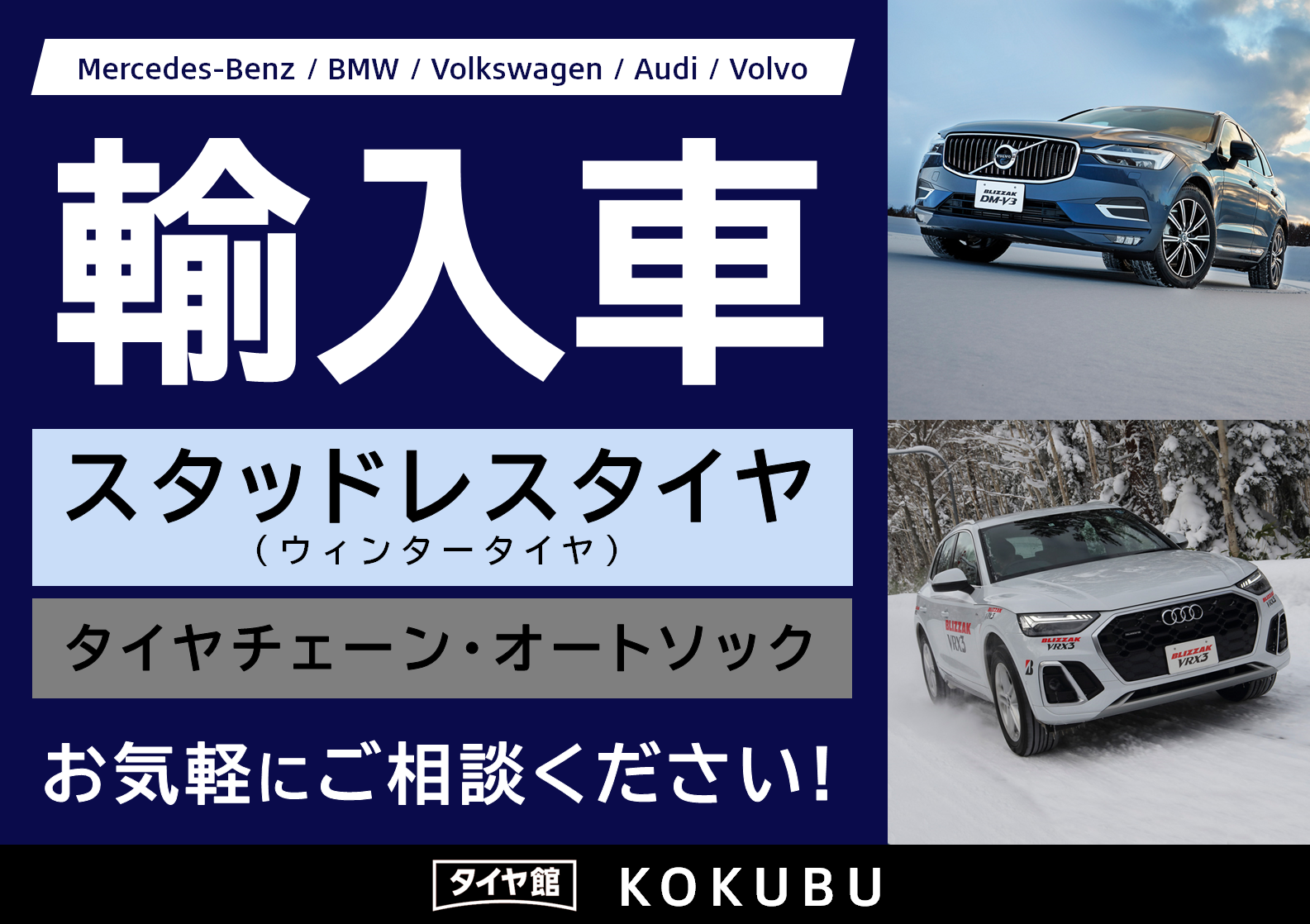 輸入車のスタッドレスタイヤ(ウィンタータイヤ)もお任せください!