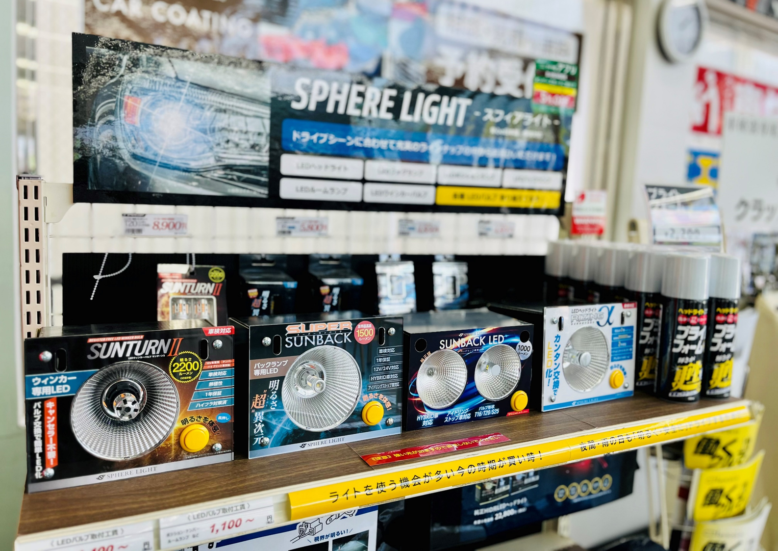 クルマ用製品としては室内灯やライセンスランプなどもLEDバルブ装着が人気となっています。