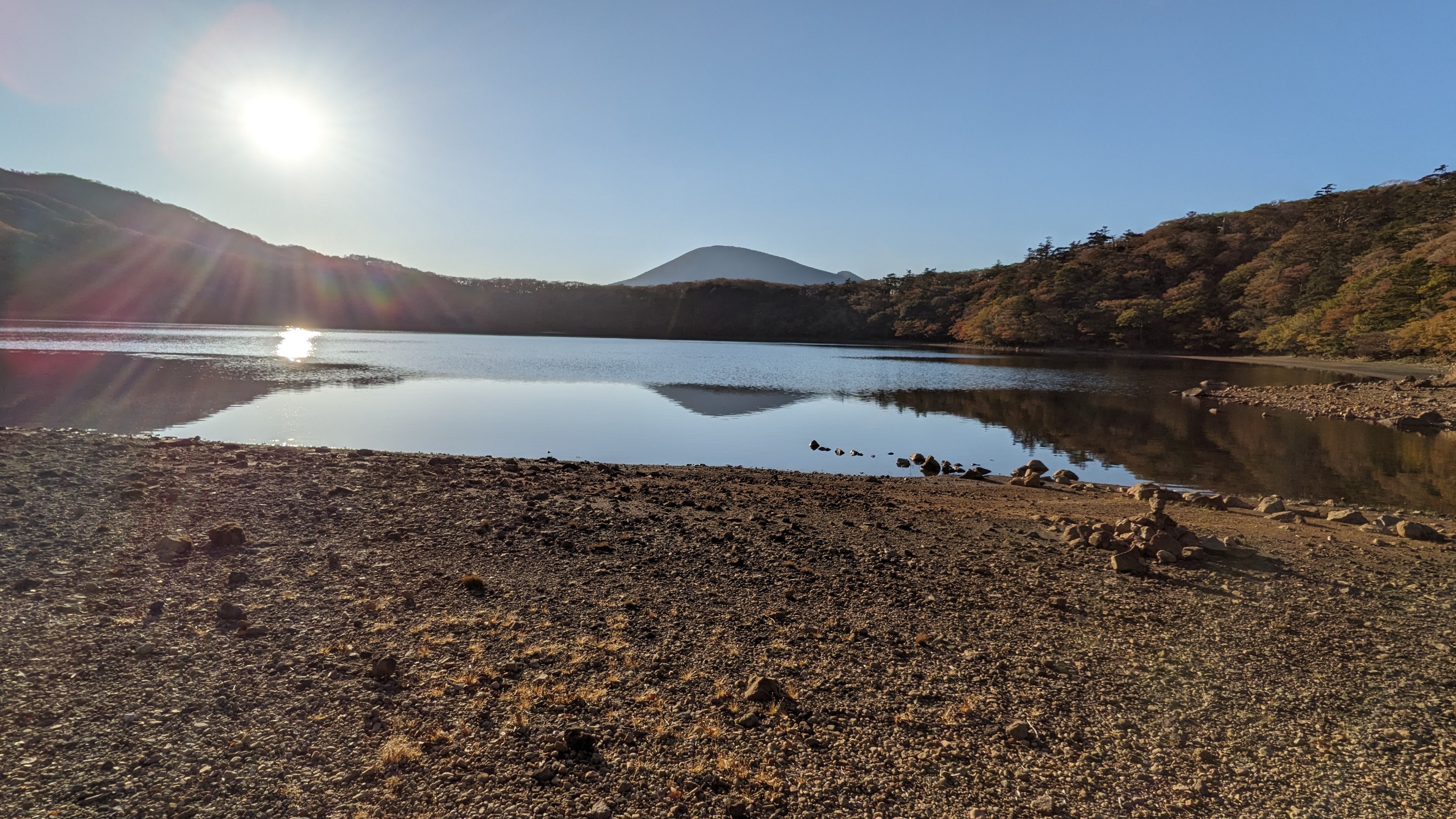 頂上の前には大幡池があり、池を眺めながらの昼食とコーヒーを満喫し