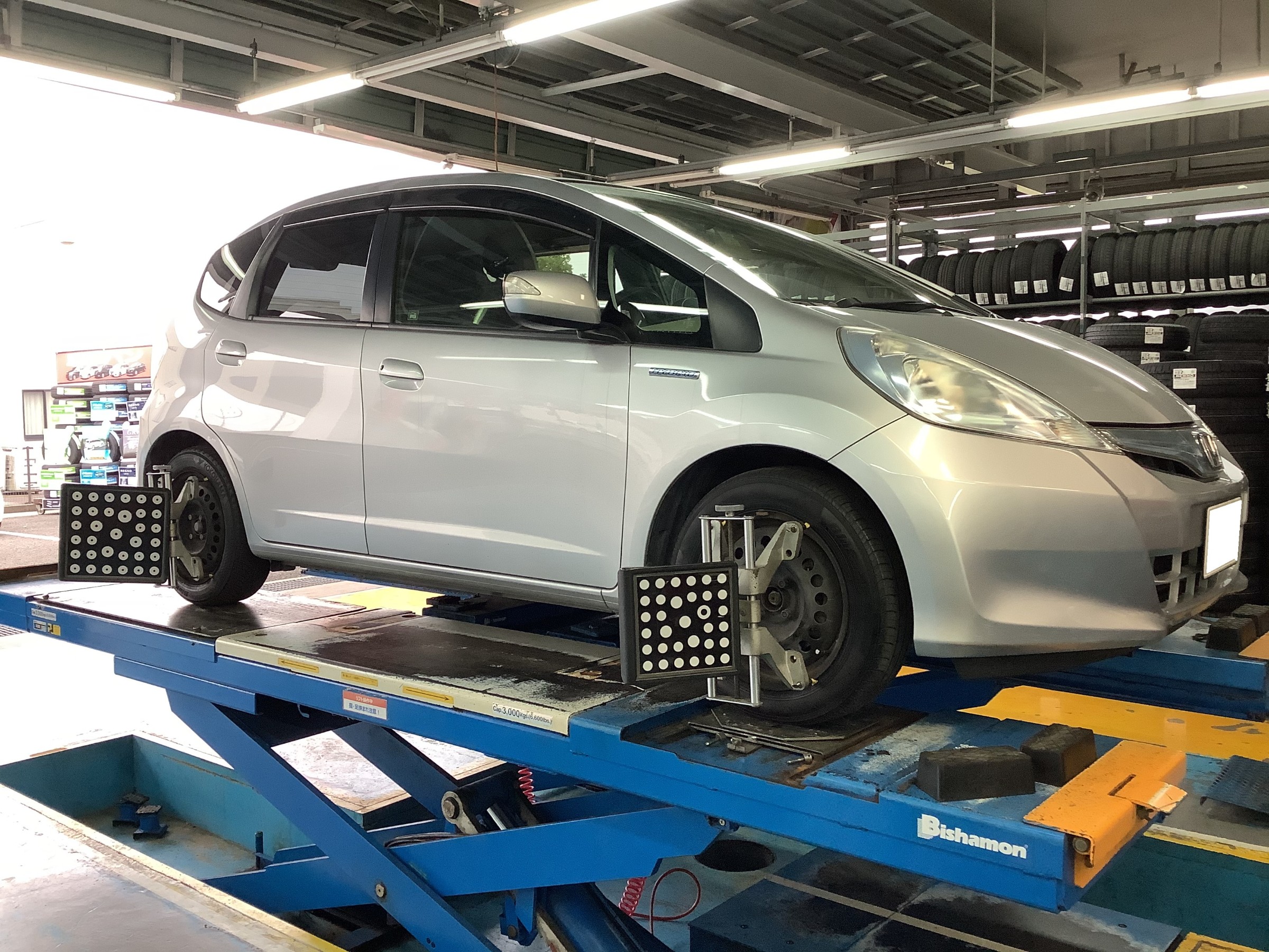 今回は、タイヤ交換時タイヤの方減りが判明しアライメント調整実施して頂きました。