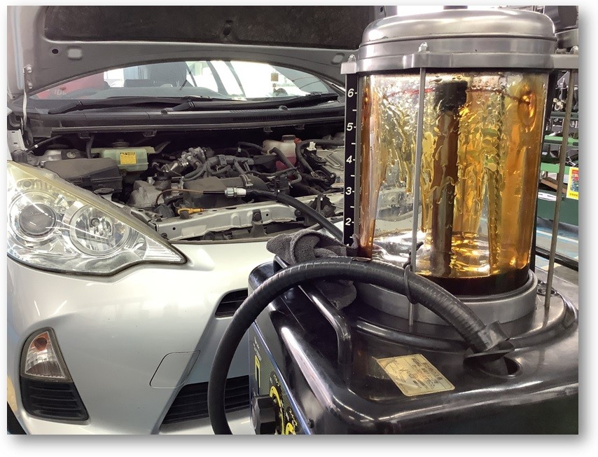 オイルチェンジャーを使用してオイル交換中デス!