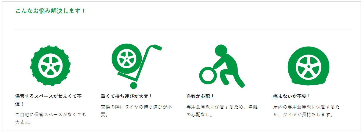 詳しくはこちらへ→※タイヤ館のタイヤ保管プログラム