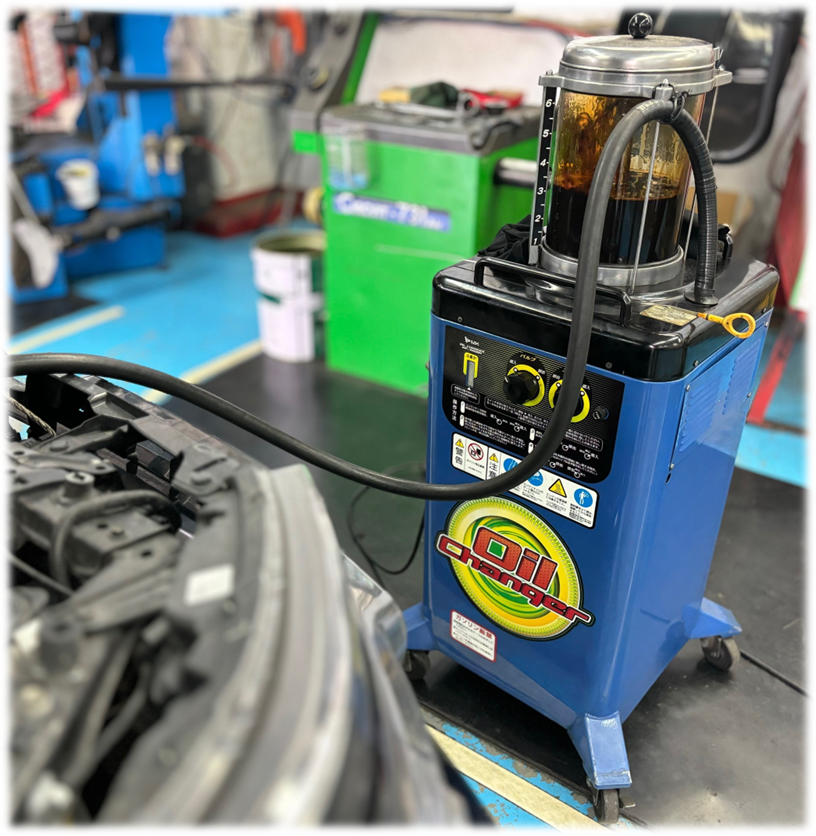 オイルチェンジャーを使用してオイル交換中デス!