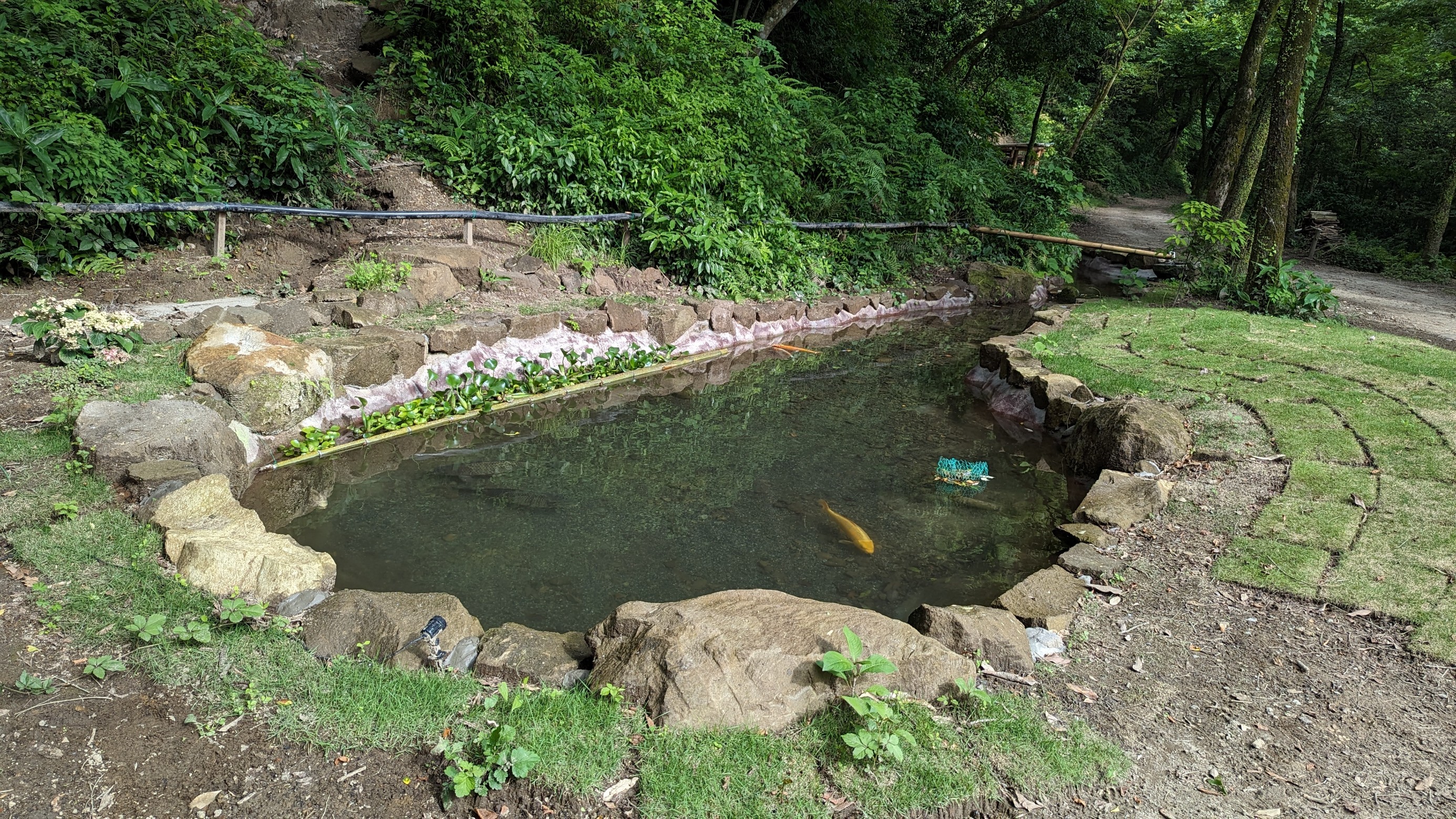 一番驚いたのが、キャンプ場内に池が出現し、錦鯉が泳いでいました。