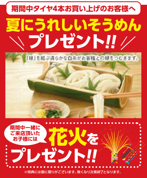 「夏のタイヤ祭り」と題してタイヤはもちろん、