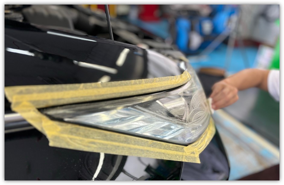 ヘッドライト専用の特殊な薬剤でコーティングしていきます。
