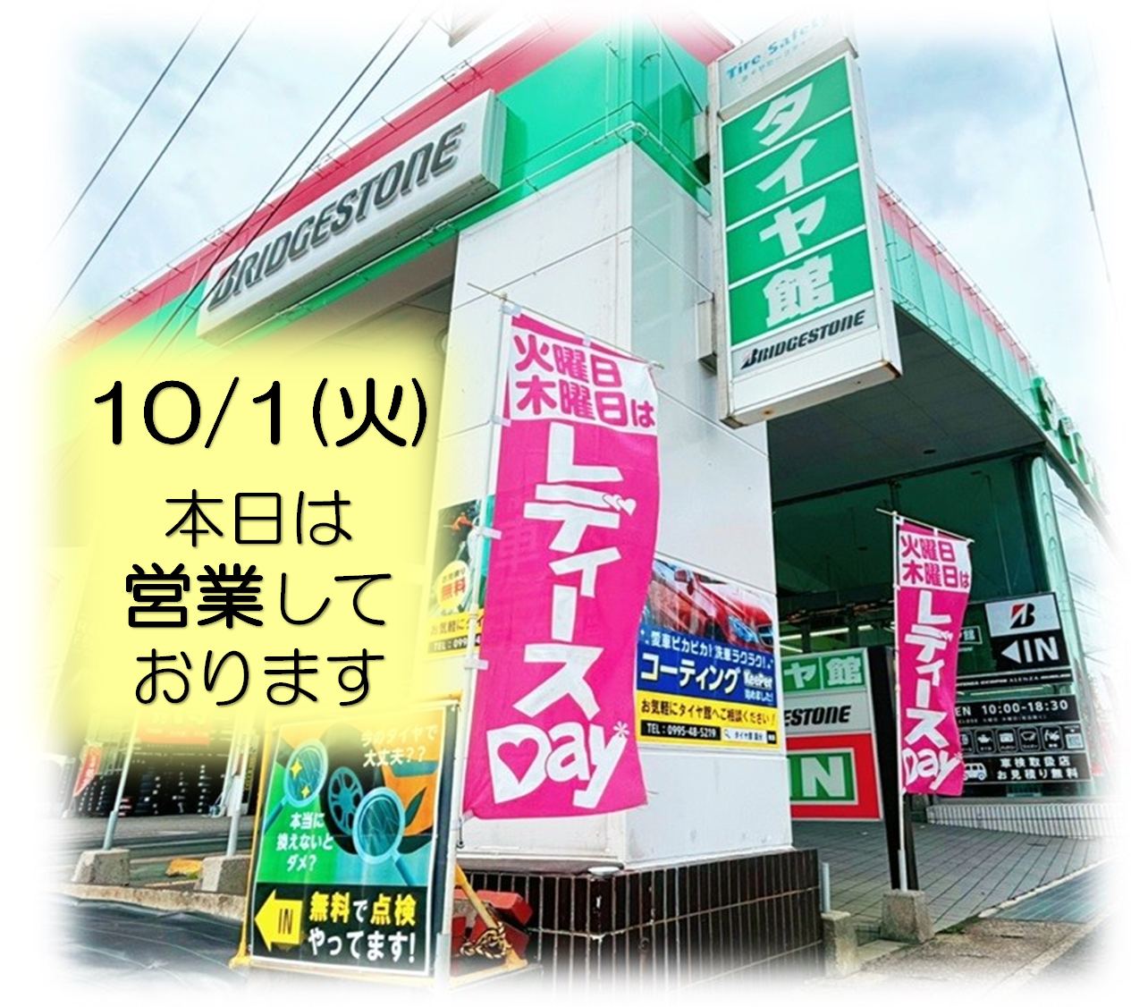 本日10/1(火)は営業日&【レディースデー】です♪