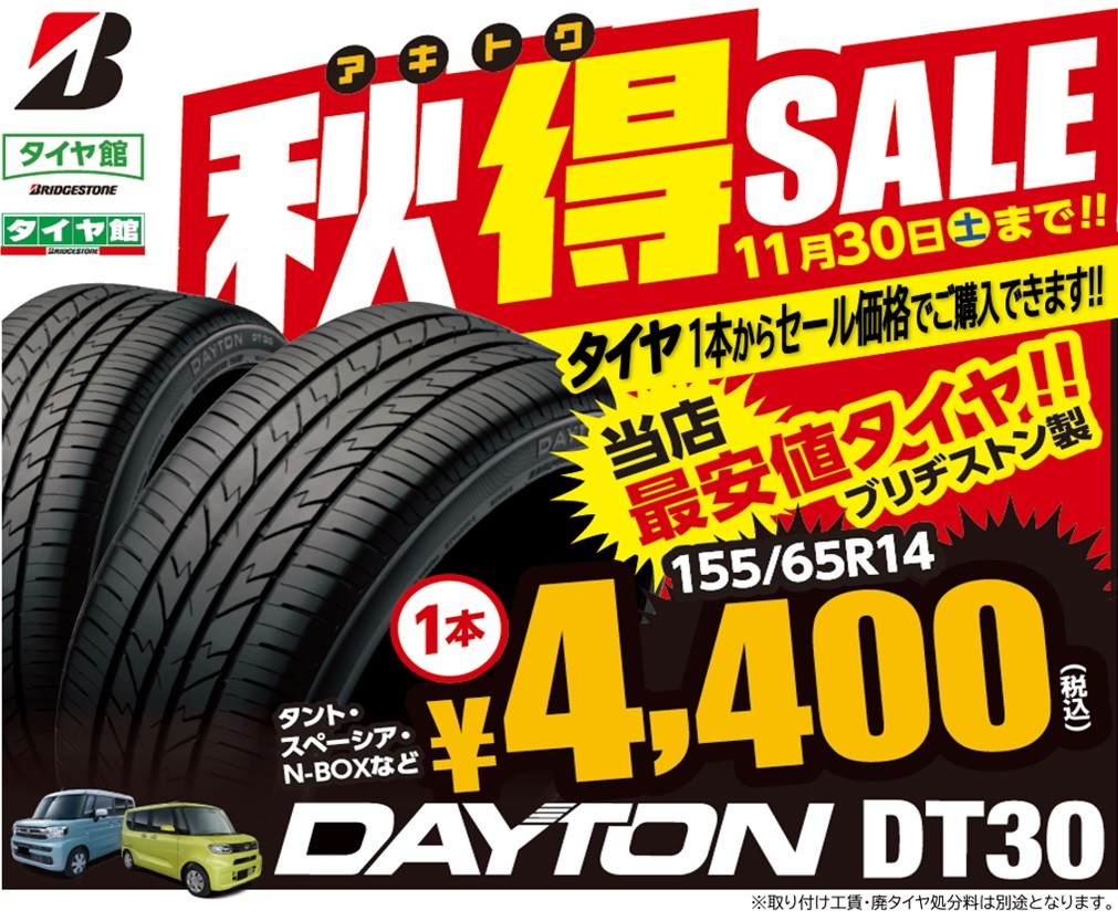 秋はお得が盛り沢山♪タイヤ館でお得をGET!