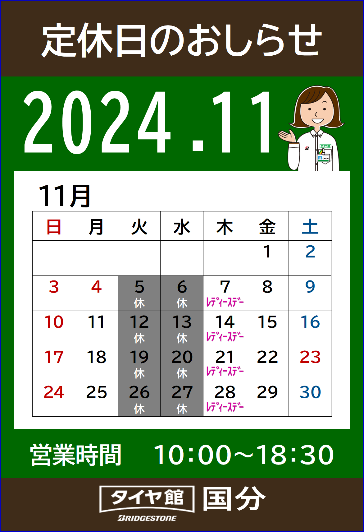 定休日明けの金曜日(11/28)は