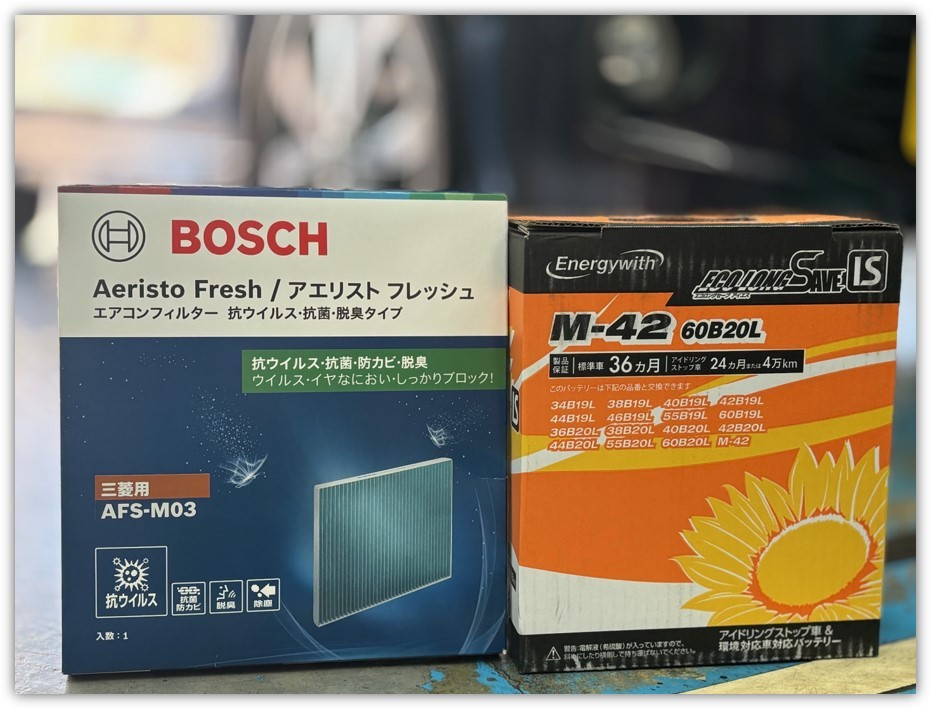 バッテリーとエアコンフィルターの交換作業をさせていただきました。