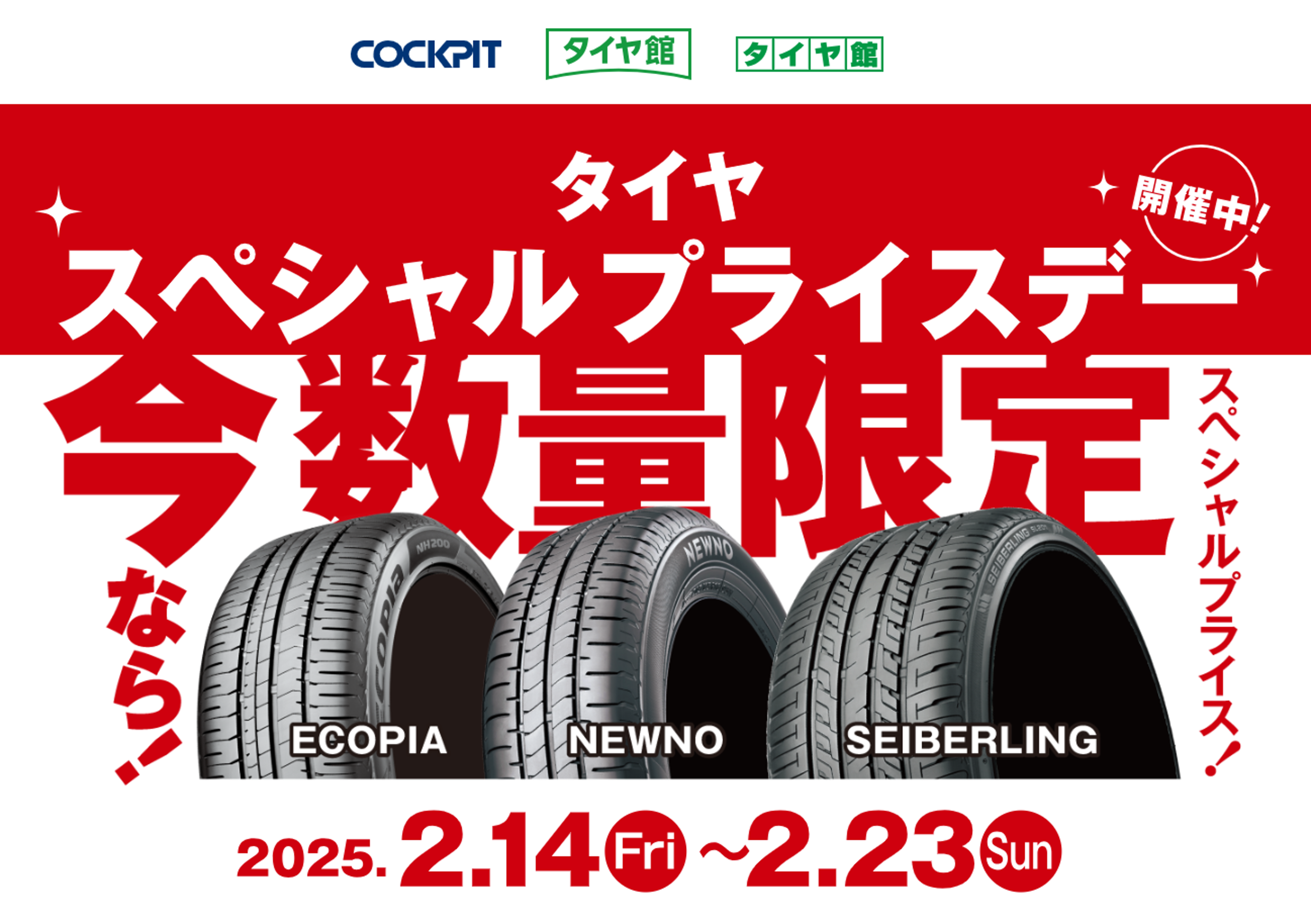 タイヤ・スペシャルプライスデーは、2/14(金)~2/23(日)まで。