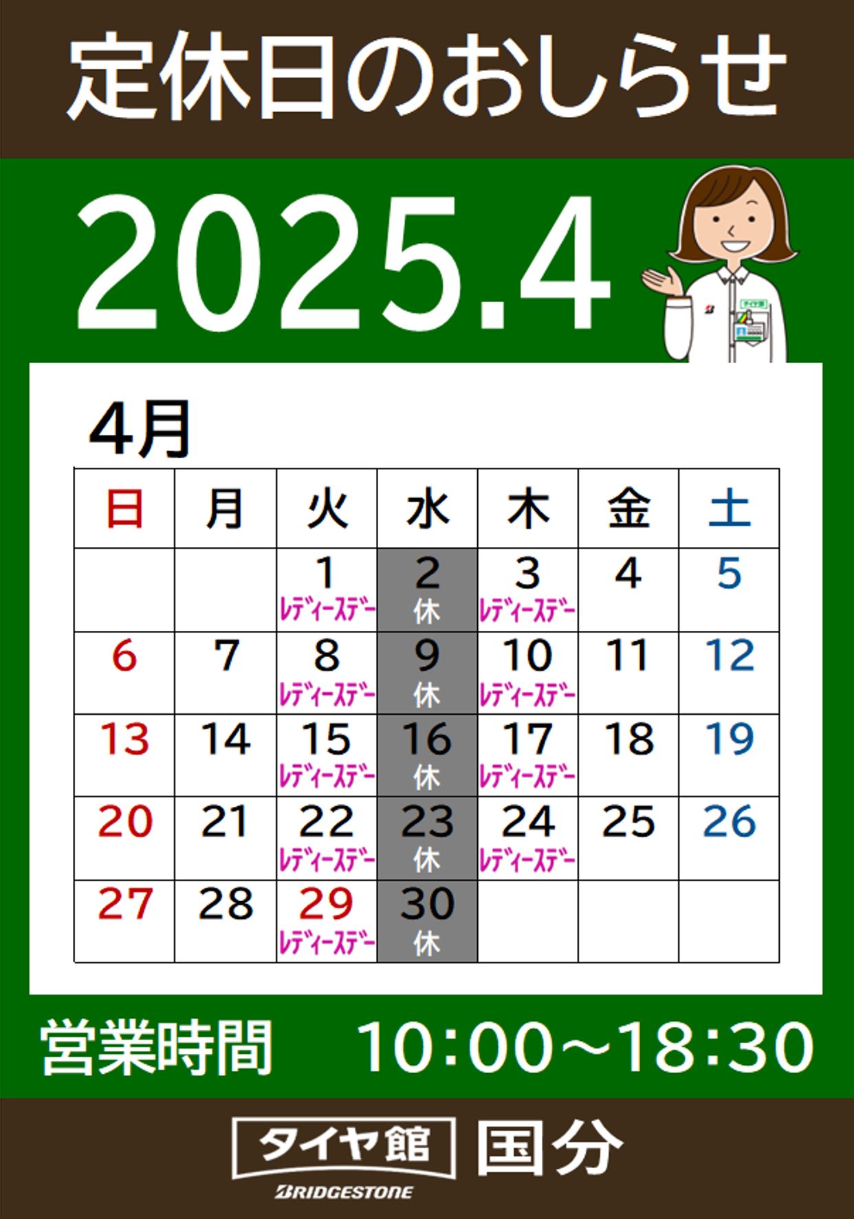 いつもタイヤ館国分をご利用いただきありがとうございます。