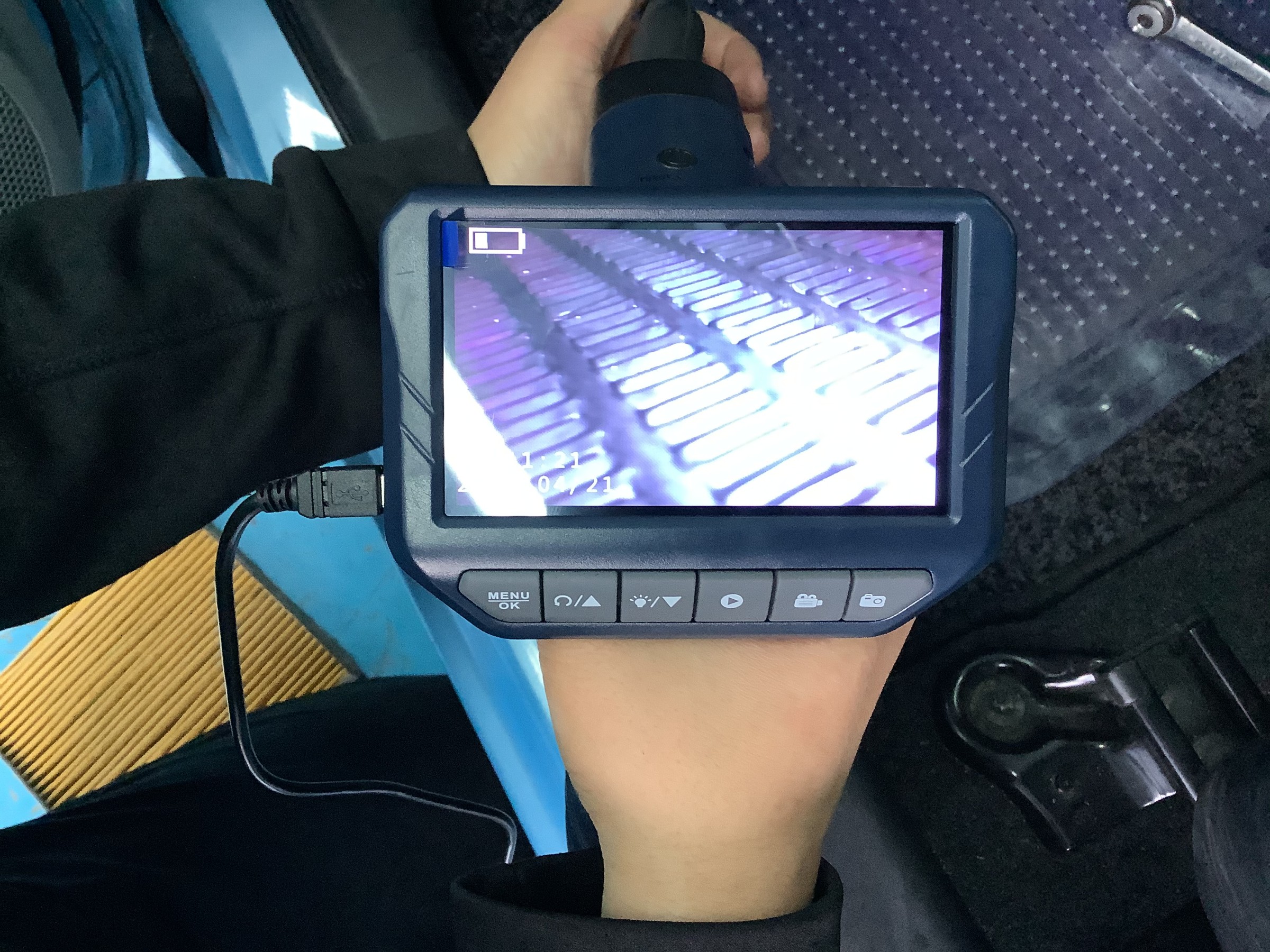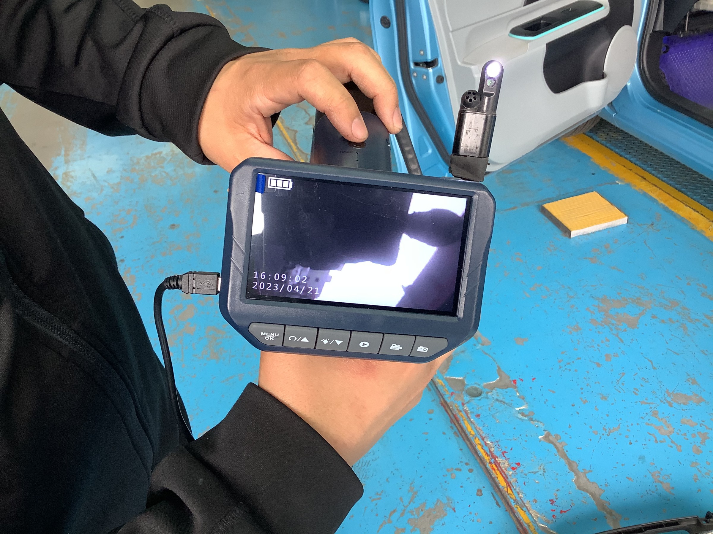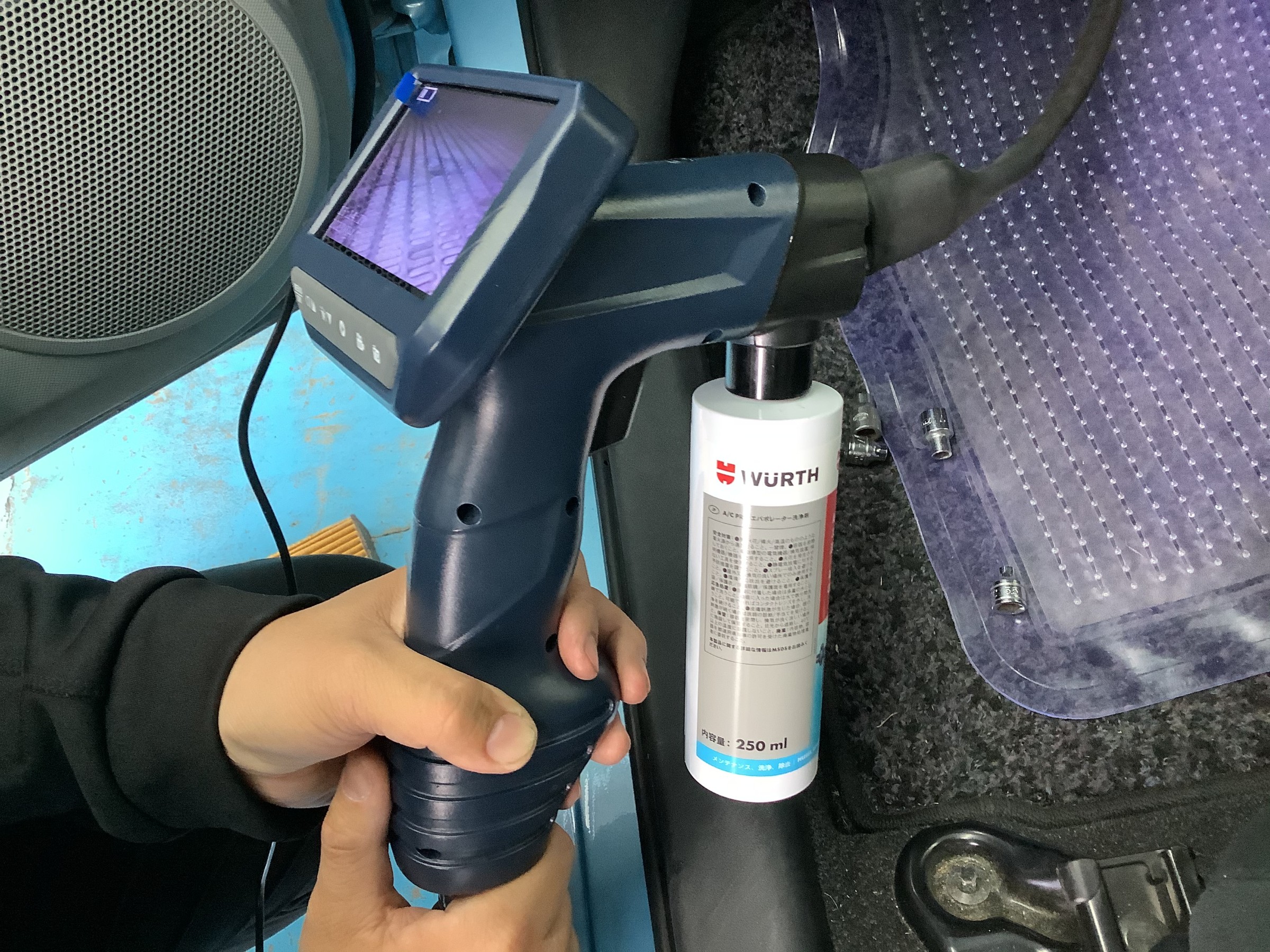 エバポレーターは見える場所にない為、専用のスコープガンを使い