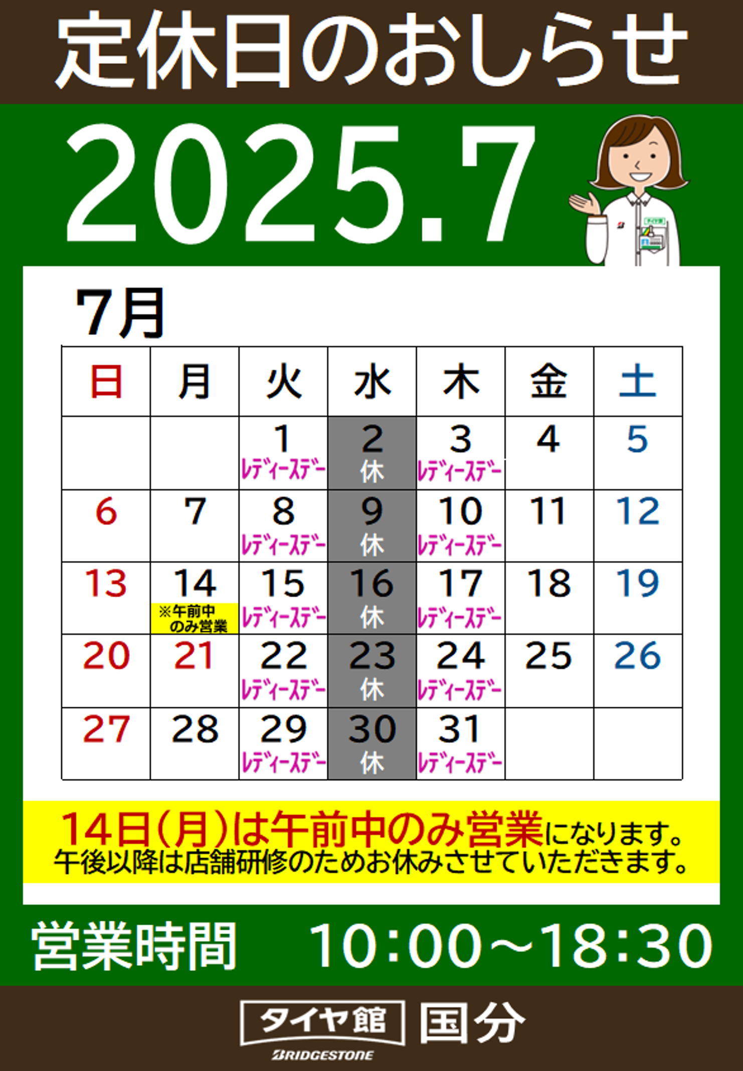 いつもタイヤ館国分をご利用いただきありがとうございます。
