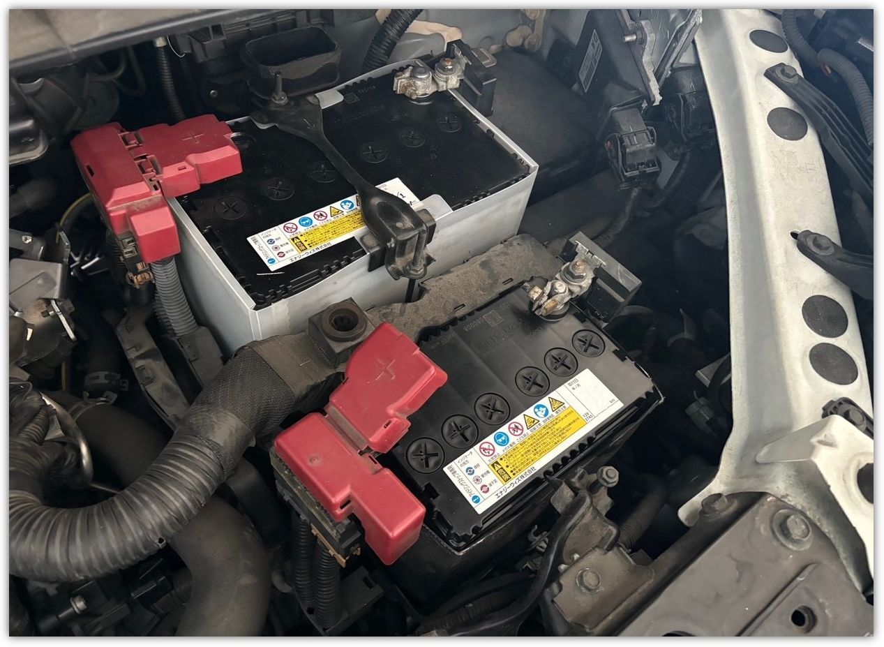 こちらのセレナにはアイドリングストップ車専用バッテリーが2個搭載されています。