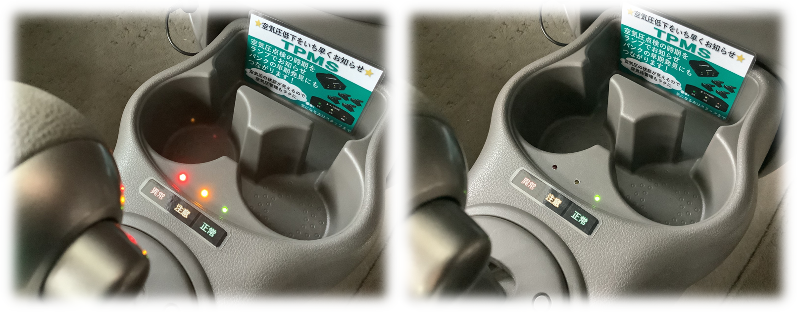 3種類のランプの点灯でタイヤの空気圧を常にチェックしてくれるステキな機械★
