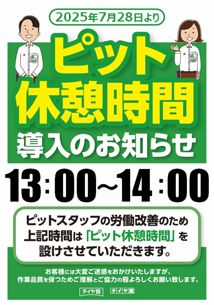 この度、タイヤ館国分店では、働き方改革の一環として