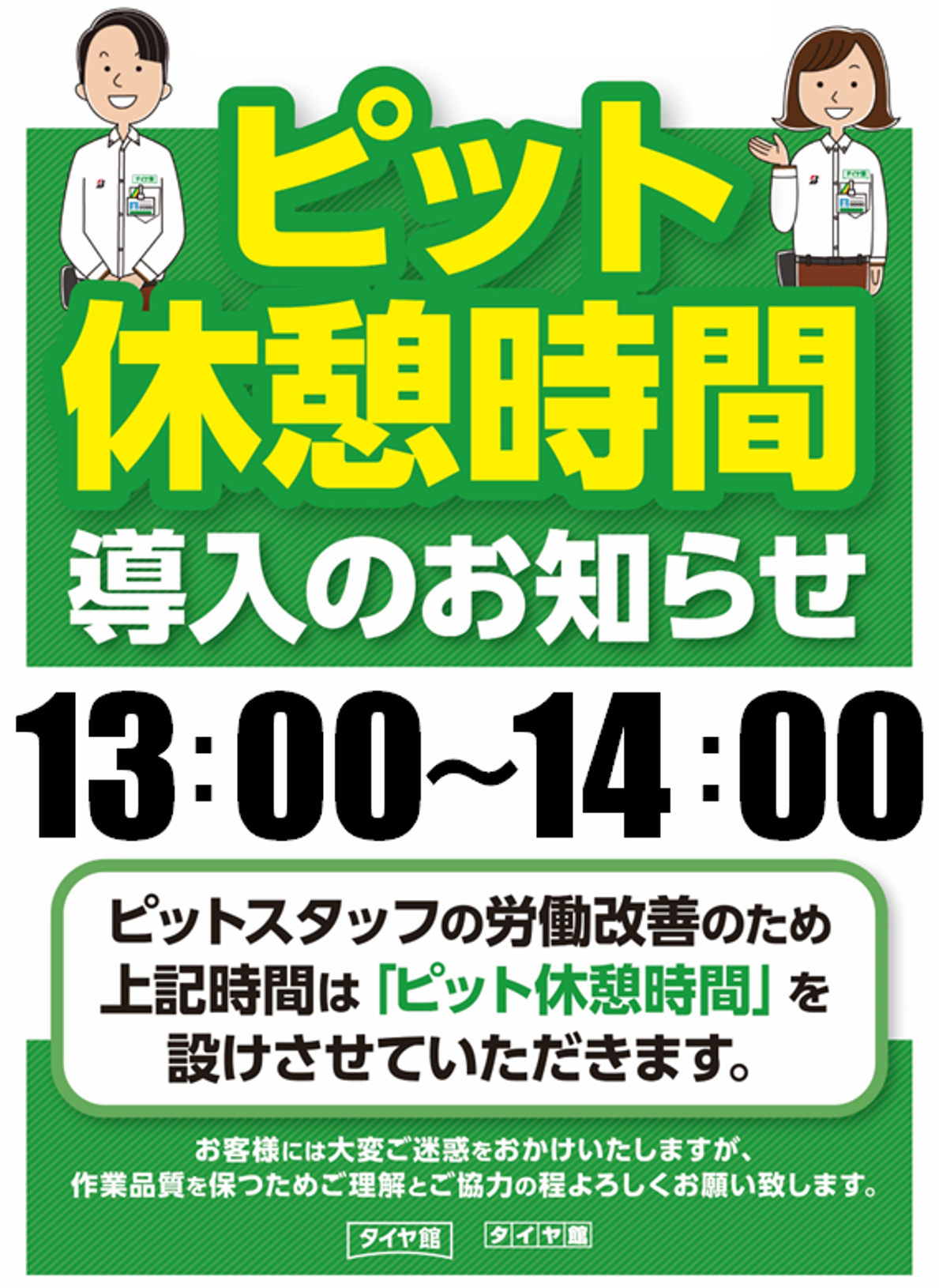 この度、タイヤ館国分店では、働き方改革の一環として
