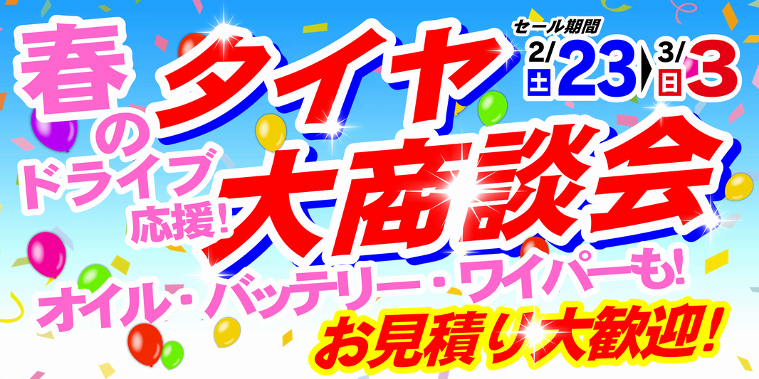 タイヤ大商談会!! ポスト 2019年2月23日 いつもタイヤ館国分のホームページを御覧いただきありがとうございます。 2/23~3/3までタイヤ大商談会開催!! 是非この機会にタイヤ館国分にお気軽にご来店ください。 スタッフ一同笑顔でお待ちしております。 カテゴリ:お知らせ