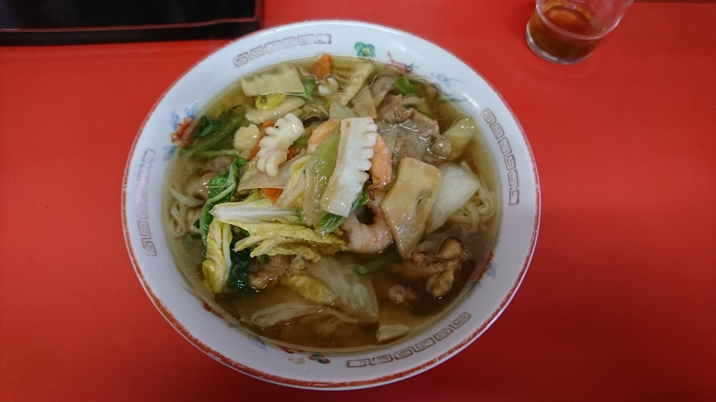 五目中華麺は、本当に量が多く麺は平たい細麺で不思議な麺でした