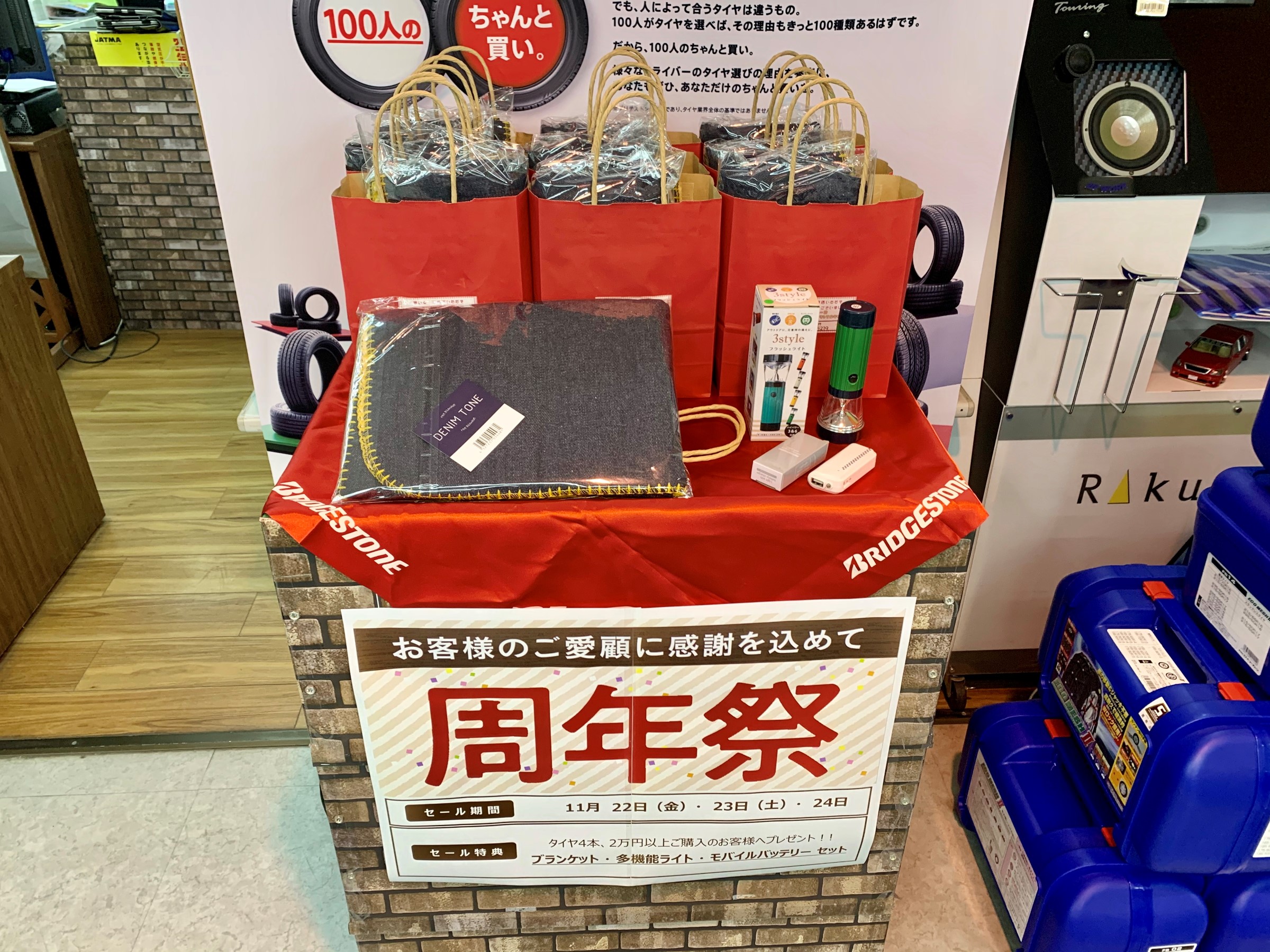 明日も! タイヤ館国分周年祭!! ポスト 2019年11月22日 タイヤ館国分11周年祭、1日目! 沢山のご来店ありがとうございました! 期間中は店内全商品、周年祭特価でご奉仕とともに、 タイヤ4本または2万円以上ご購入のお客様へ、寒い時期に役立つ 便利グッズ3点セットを数量限定にてプレゼントしております! 明日もスタッフ一同笑顔でお待ちしております。 担当:イナトミ