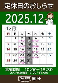 【12月】定休日のお知らせ